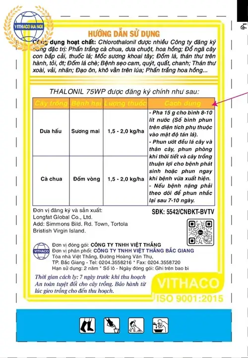 Hoạt chất:Chlorothalonil 75%