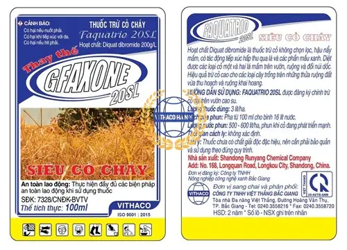 Faquatrio 20SL là thuốc trừ cỏ không chọn lọc, hậu nảy mầm với thành phần chính là hoạt chất Diquat dibromide có tác động tiếp xúc, hấp thu nhanh qua lá và các bộ phận màu xanh của cỏ ngay sau khi phun.
