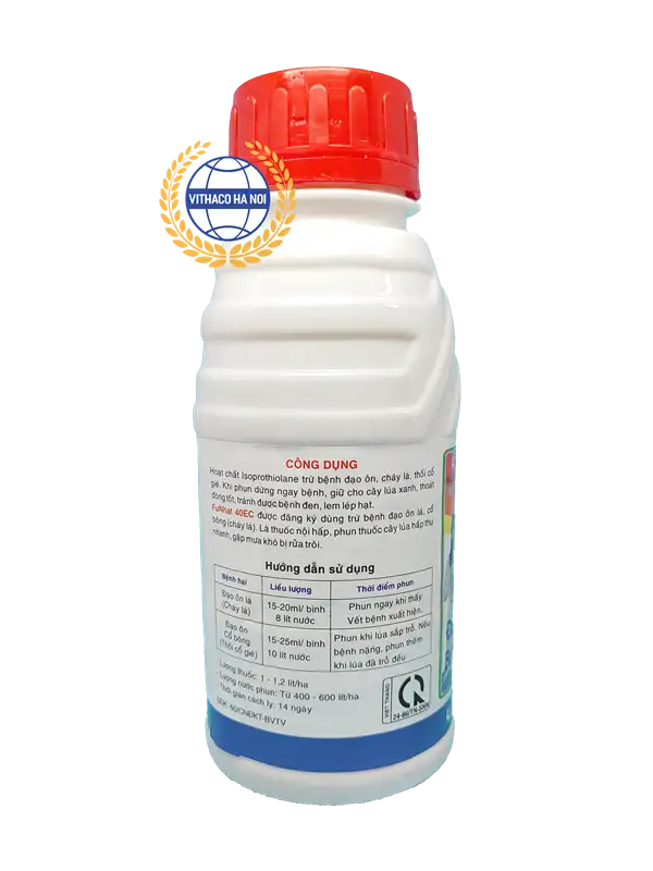 Trừ bệnh đạo ôn, cháy lá, thối cổ gié, khi phun dừng ngay bệnh, giữ cho cây lúa xanh, thoát dòng tốt, tránh được bệnh đen, lem lép hạt. Funhat 40EC được đăng ký dùng trừ bệnh đạo ôn lá, cổ bông (cháy lá), là thuốc nội hấp, phun thuốc cây lúa hấp thụ nhanh, gặp mưa khó bị rửa trôi.