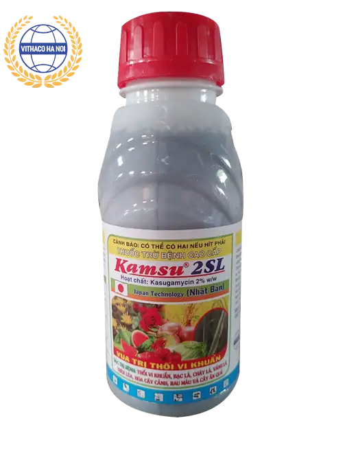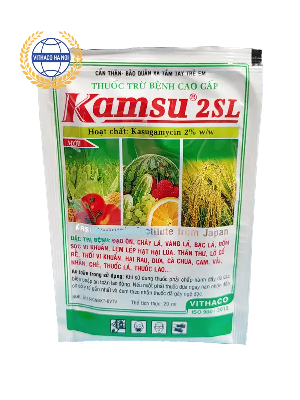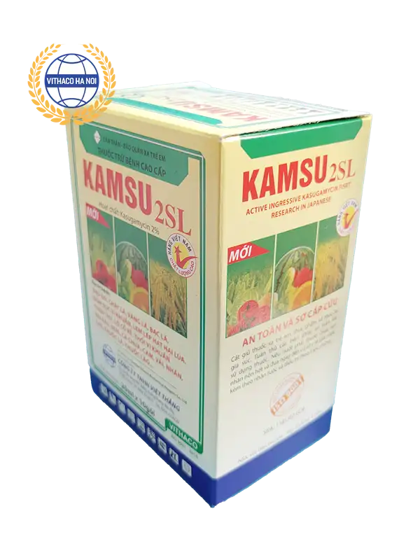 Thành phần Kasugamycin trong chế phẩm Kamsu 2SL có tác dụng ngăn chặn sự sinh sôi, phát triển của vi khuẩn và nấm bệnh, được sử dụng để trừ các bệnh gây nên bởi vi khuẩn trên lúa, rau màu và cây ăn trái.